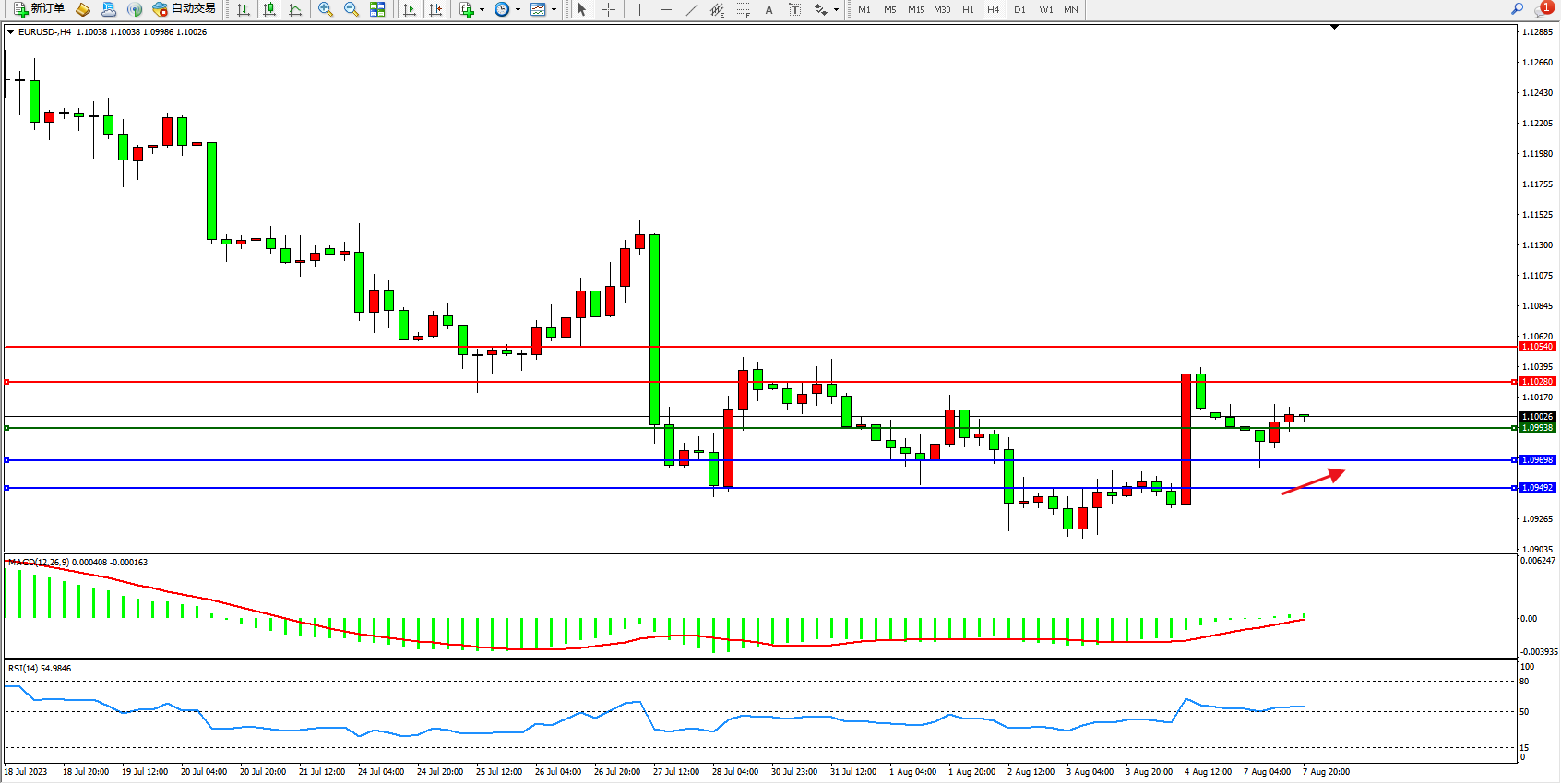 交易策略:1.09938上方看涨,目标1.10280 1.10540