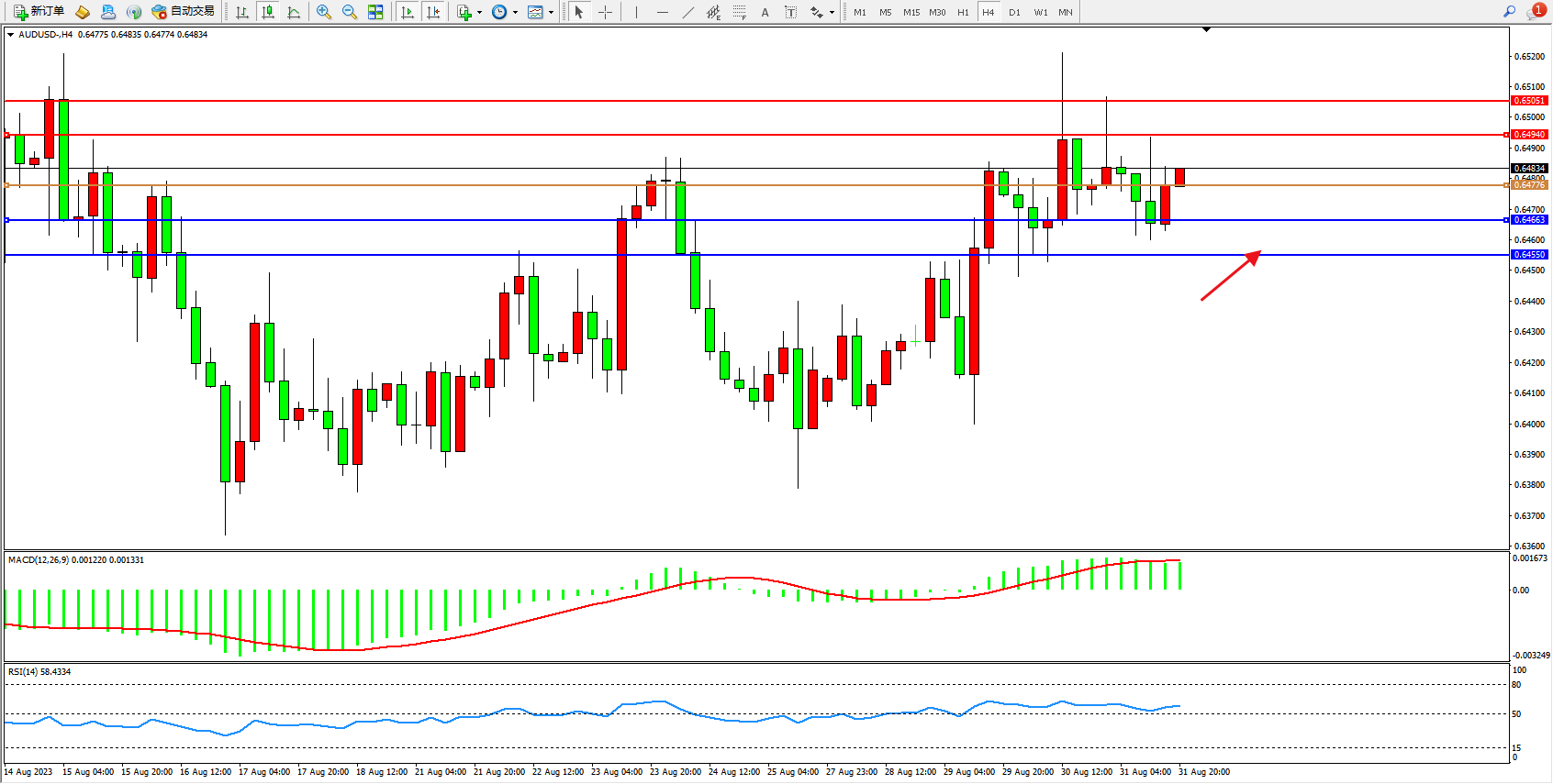 交易策略:0.64776上方看涨,目标0.64940 0.64051