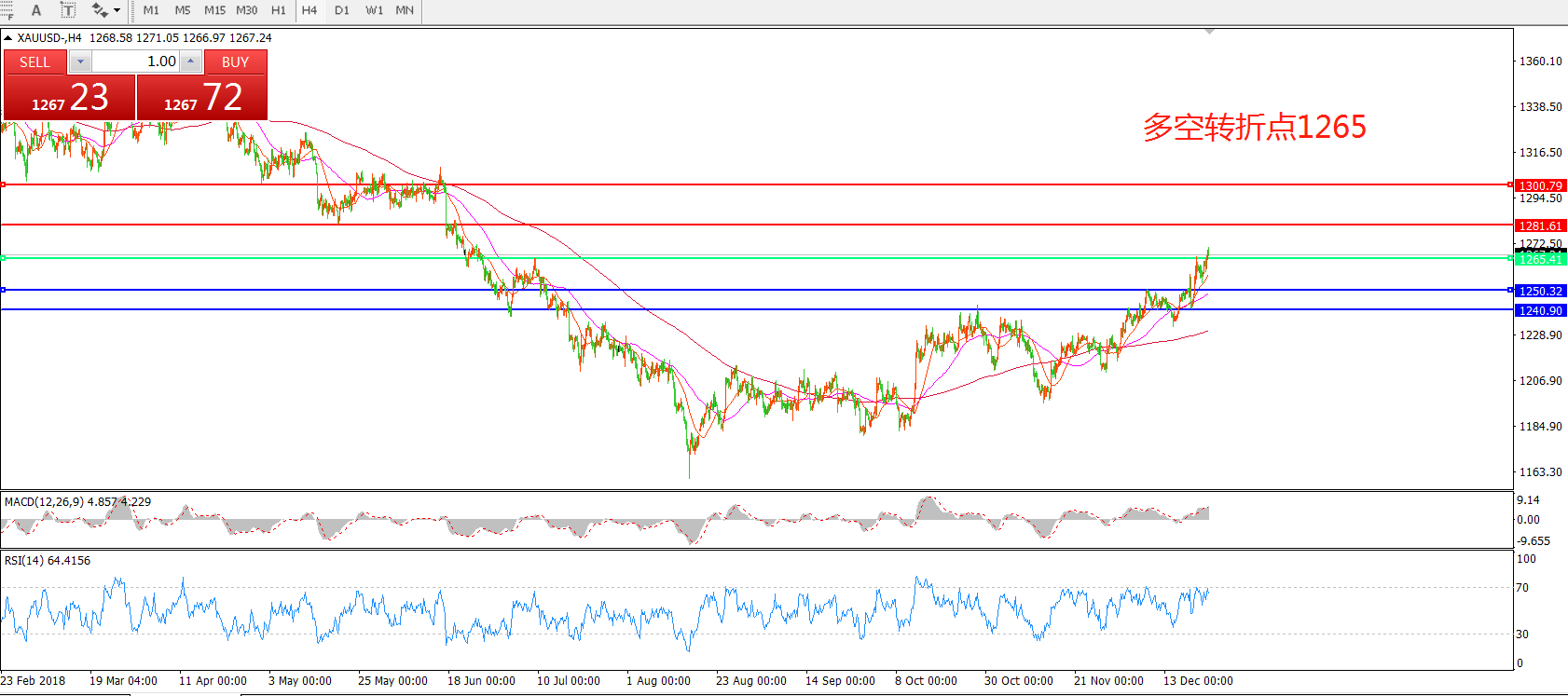 交易策略:在1265.00之上看涨,目标1280.00  1300.00
