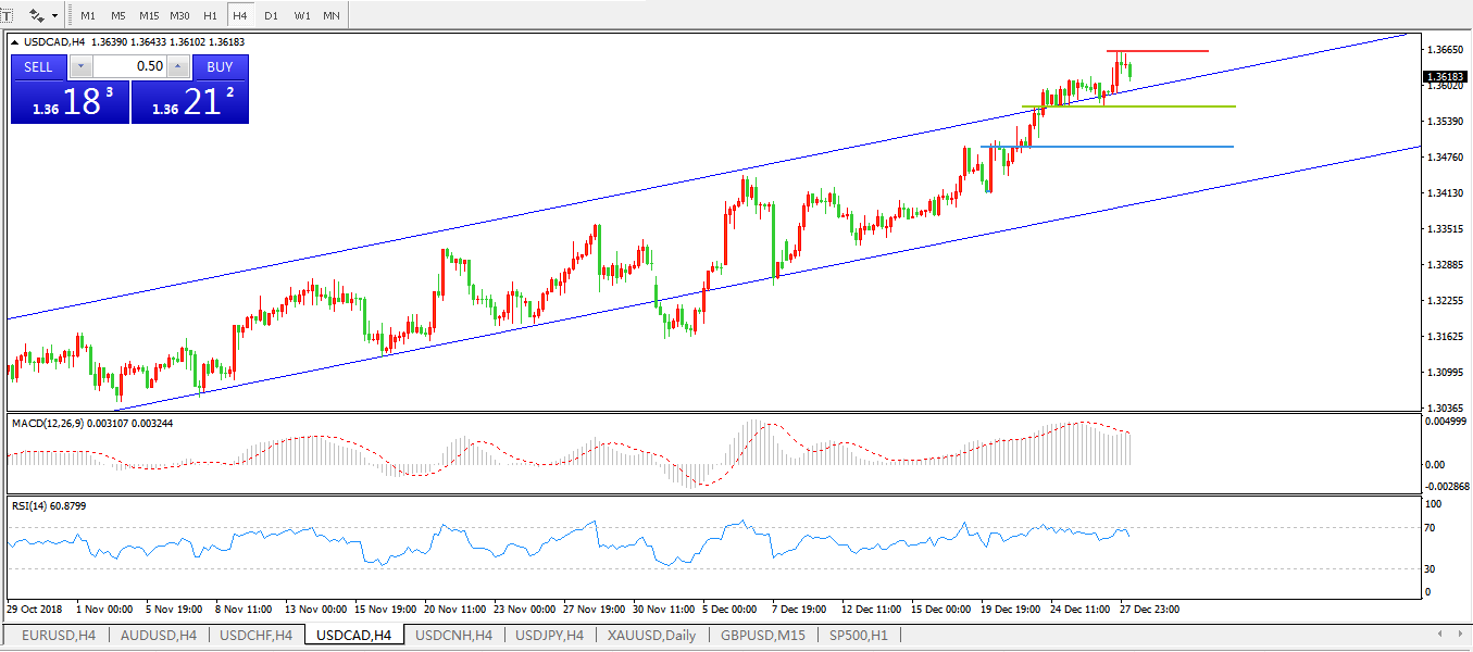 美元兑加元USDCAD 4小时线图: