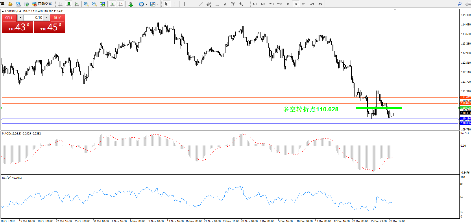 交易策略:110.628下方看跌,目标110.196110.006