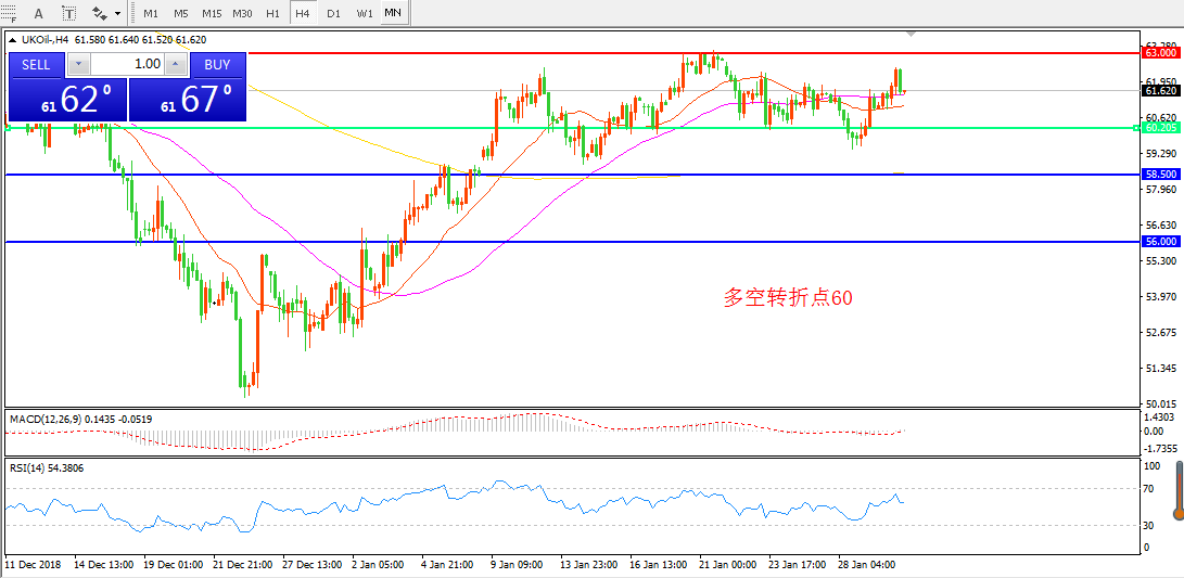 交易策略:在60.00之上看涨,目标63.00 67.00