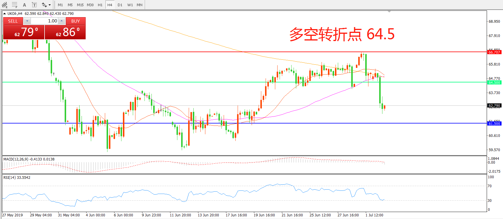 交易策略:在64.50之下看跌,目标61.50 59.50