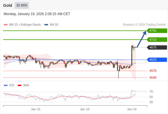 交易策略: 在 4620 之上,看涨,目标价位为 4710 ,然后为 4750 。