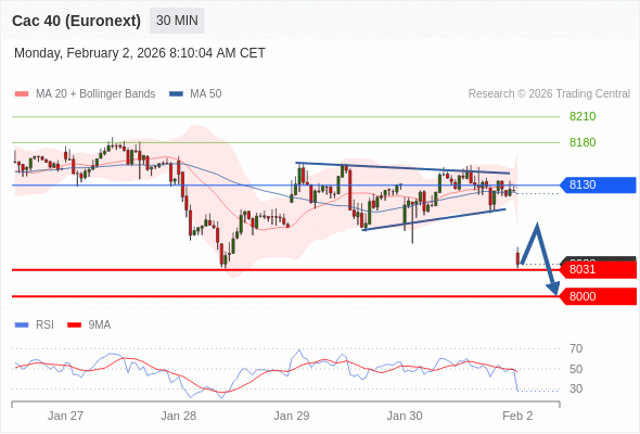 交易策略: 在 8130 之下,看跌,目标价位为 8031 ,然后为 8000 。