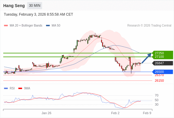 恒生指数 当日内: 目标位为27250。