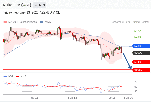 在 57380 之下,看跌,目标价位为 56480 ,然后为 56050 。