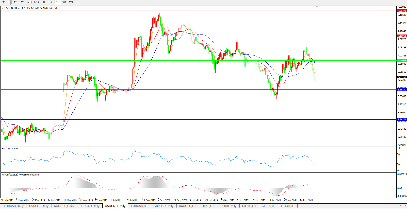 美元兑人民币USDCNH    日线图:
