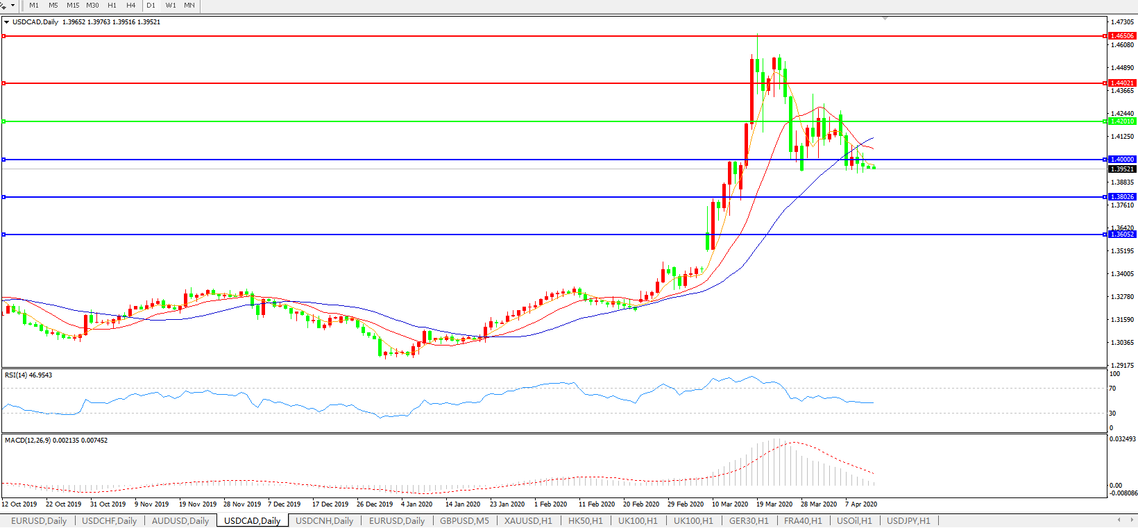 美元兑加元USDCAD    日线图: