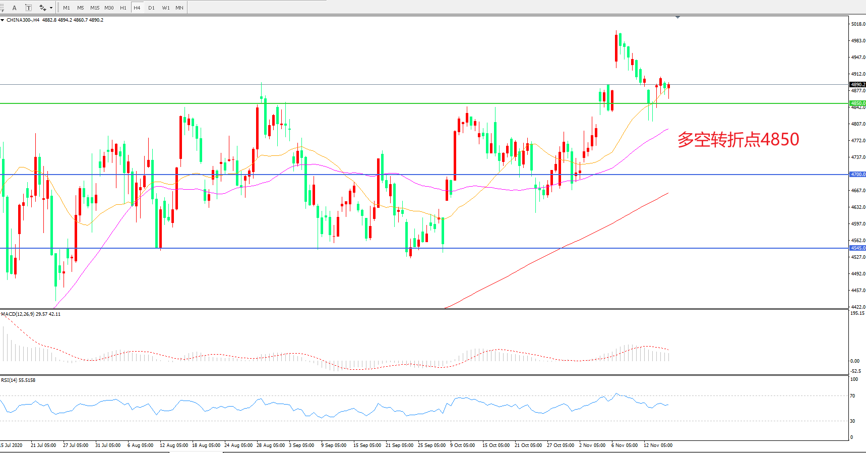 多空转折点:4850.00