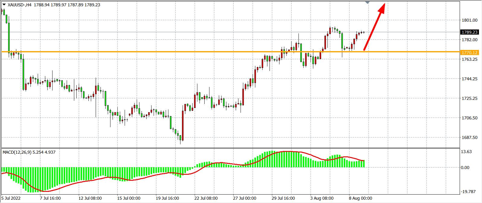 交易策略:在1770.00之上看涨,目标1800.00           1820.00