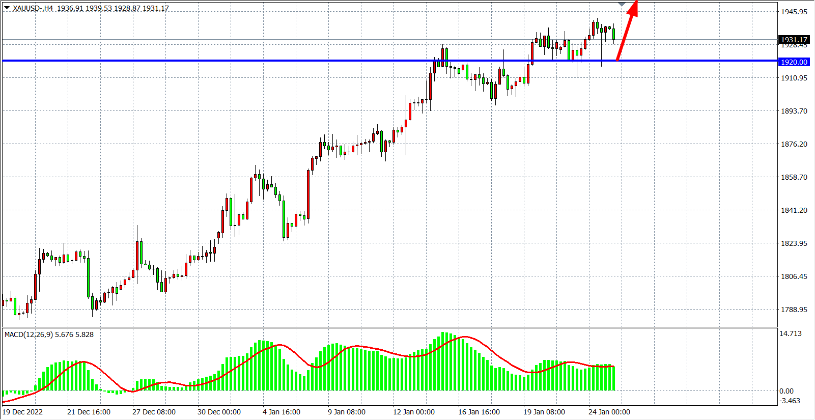 现货黄金XAUUSD    4小时图