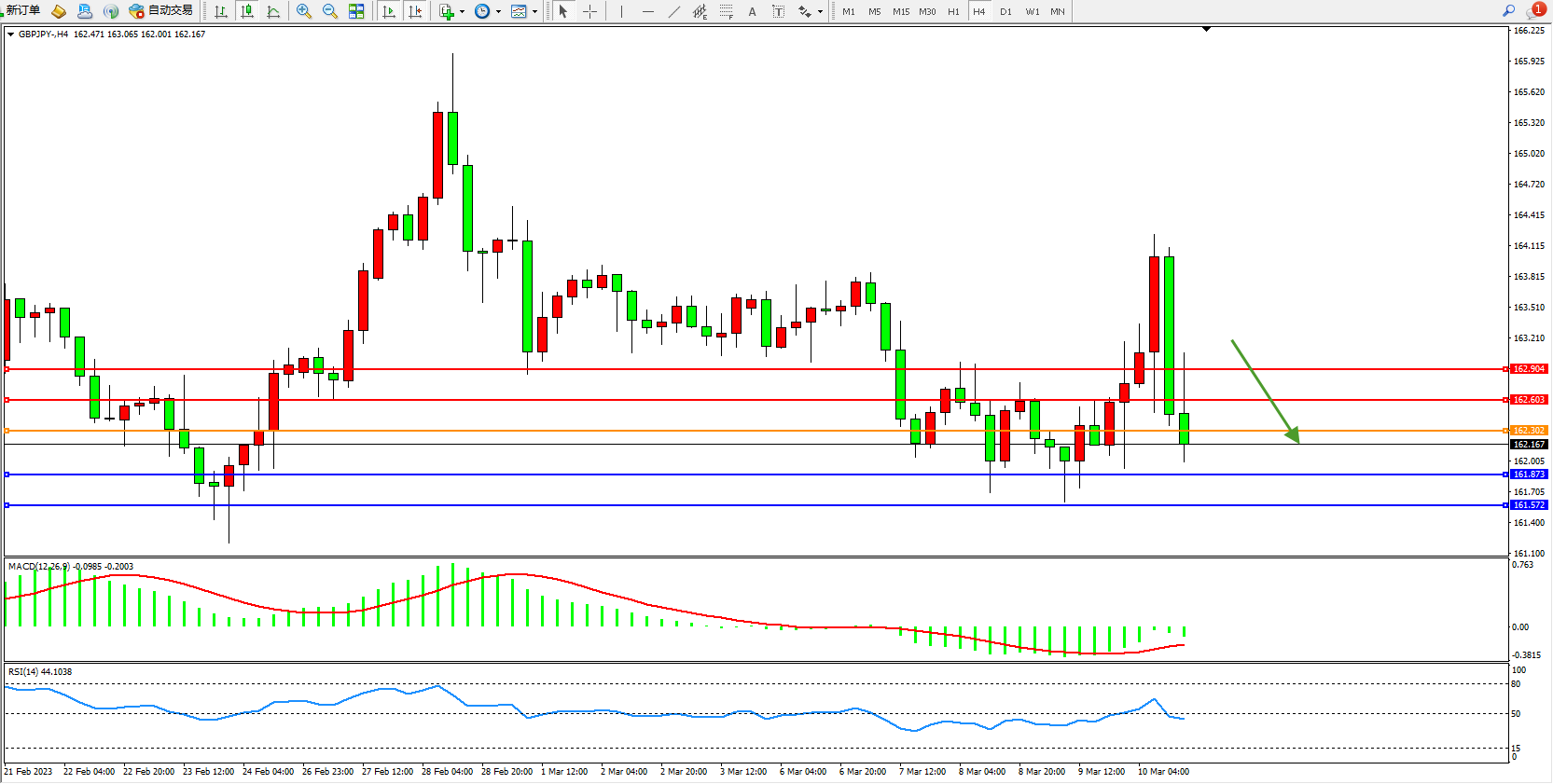 交易策略:162.302下方看跌,目标161.873 161.572