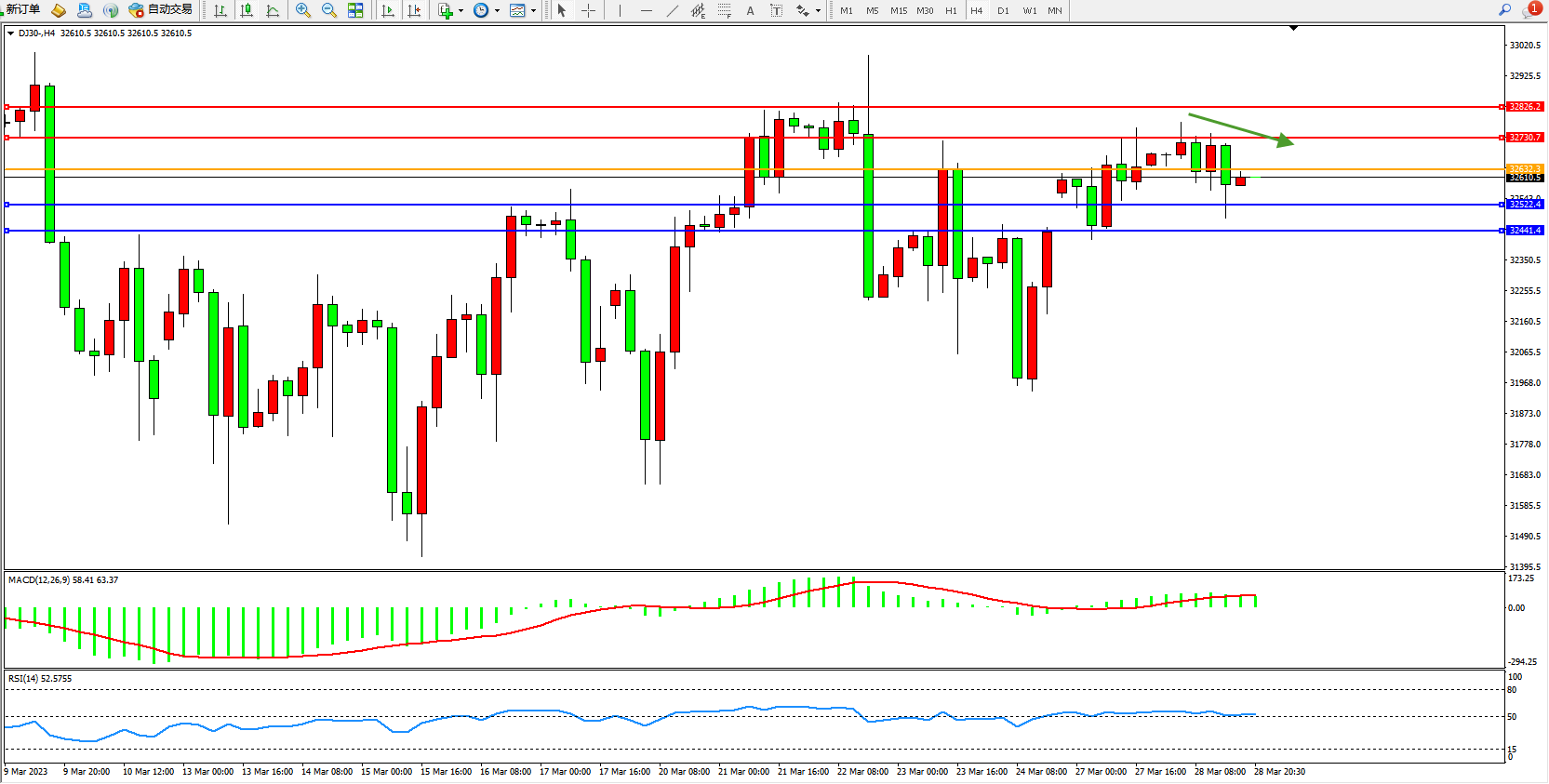 交易策略:32632下方看跌,目标32522 32441