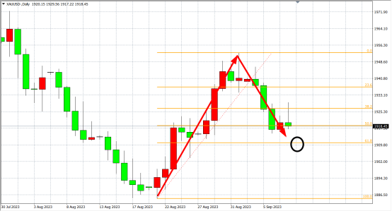 周二(9月5日)美联储官员又“放鹰”,沃勒警告市场别匆忙预测美联储已经结束加息,美指闻言上涨,一度上逼105关口,美债收益率涨至一周高位,现货黄金受到美元和美债收益率双双走高的压制,收跌0.64%。