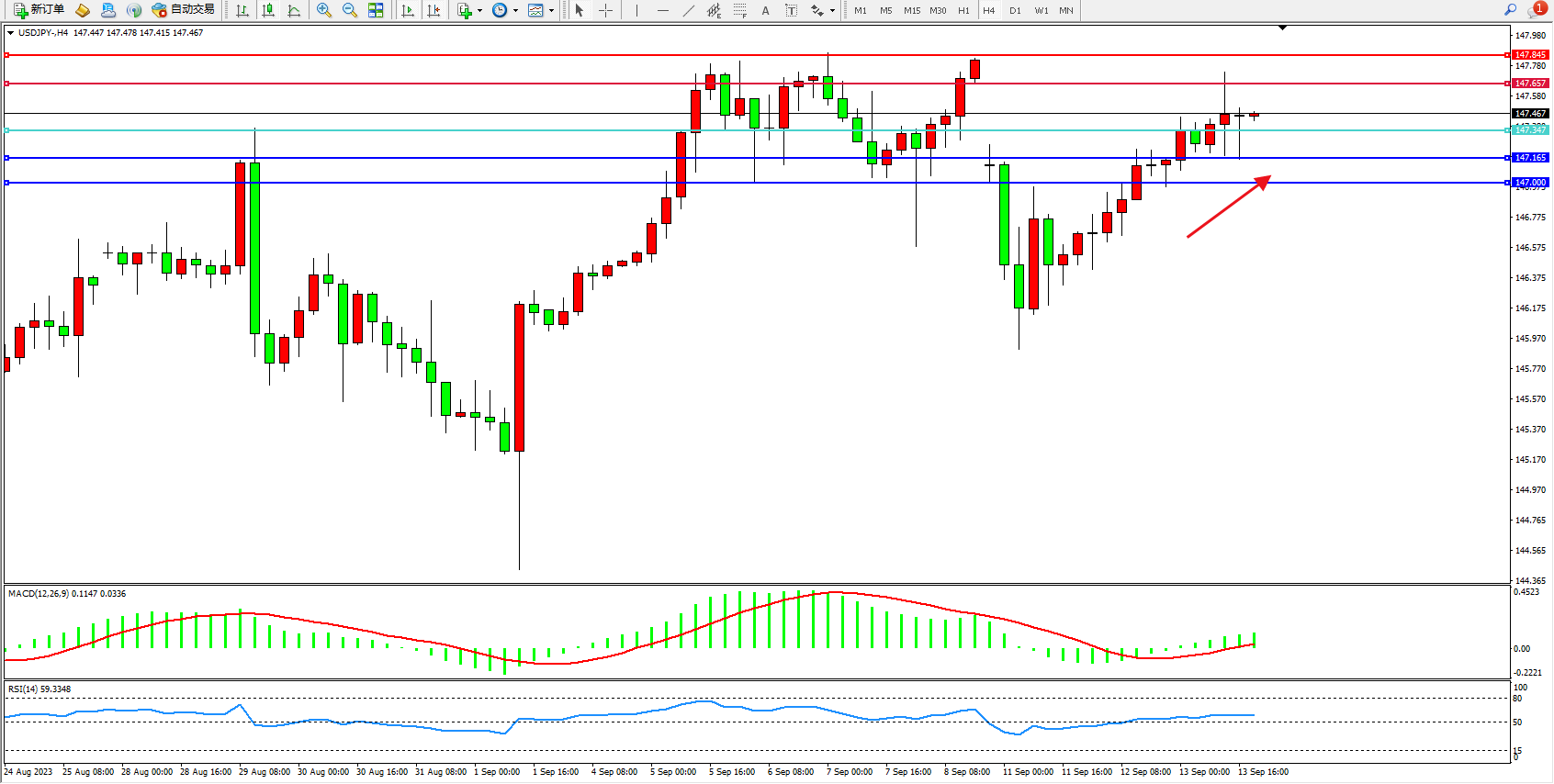 交易策略:147.347上方看涨,目标147.657 147.845